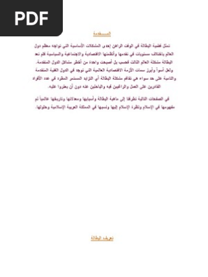 مشكلة البطالة وعلاجها دراسة مقارنة بين الفقه والقانون طريق الإسلام